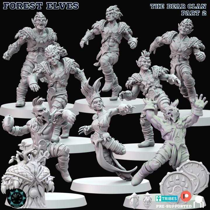 Forest Elves Team Complete - Wood Elves - Fantasy Football - Realm Of Paths Miniatures